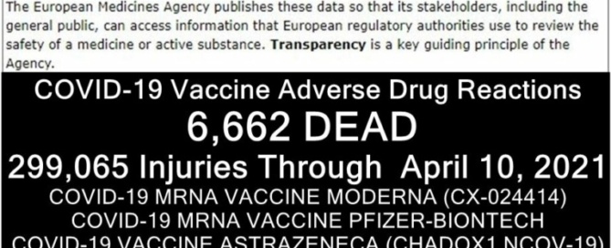 Their report through April 10, 2021 lists 6,662 deaths and 299,065 injuries following injections of four experimental COVID-19 shots: