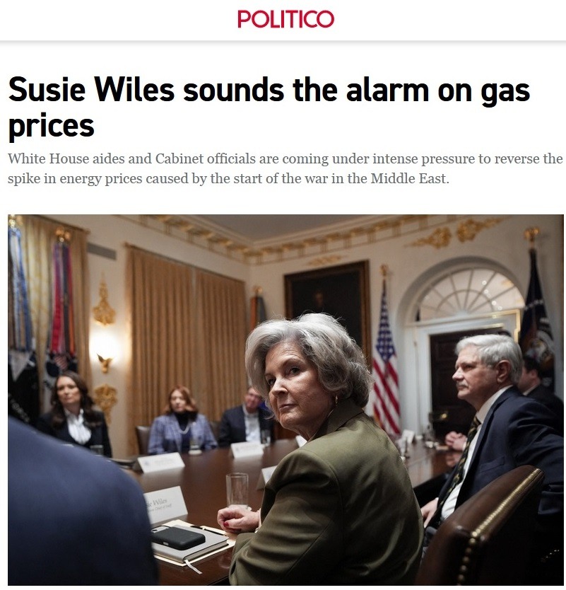 President Donald Trump’s chief of staff, Susie Wiles, is telling his advisers to bring ideas to the Oval Office to lower gasoline prices in the wake of the U.S. attack on Iran, according to two energy industry executives familiar with the conversations.